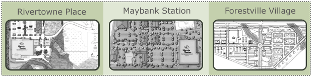 The capital markets are tight and a lot of players are watching on the sidelines. Meanwhile, we have three new commercial developments in the pipeline—Rivertowne Place in Mt. Pleasant, Maybank Station on Johns Island and Forestville Village in Raleigh. Three Harris Teeter-anchored shopping centers. Three examples of the new energy that brings people and projects together in the Carolinas.